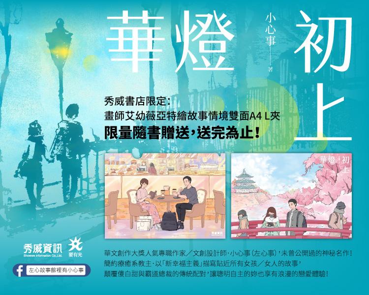 即日起至2018/3/31凡預購《華燈初上》一書即可免費獲得:畫師艾幼薇亞特繪.故事情境雙面L夾一份!限量100份,下單即贈送,送完為止!